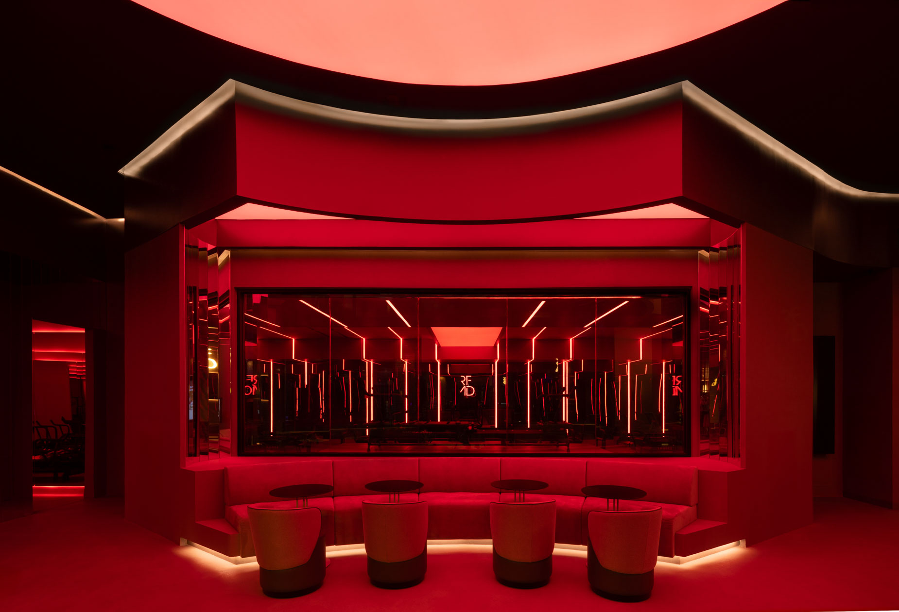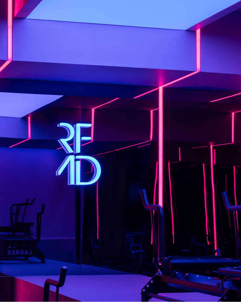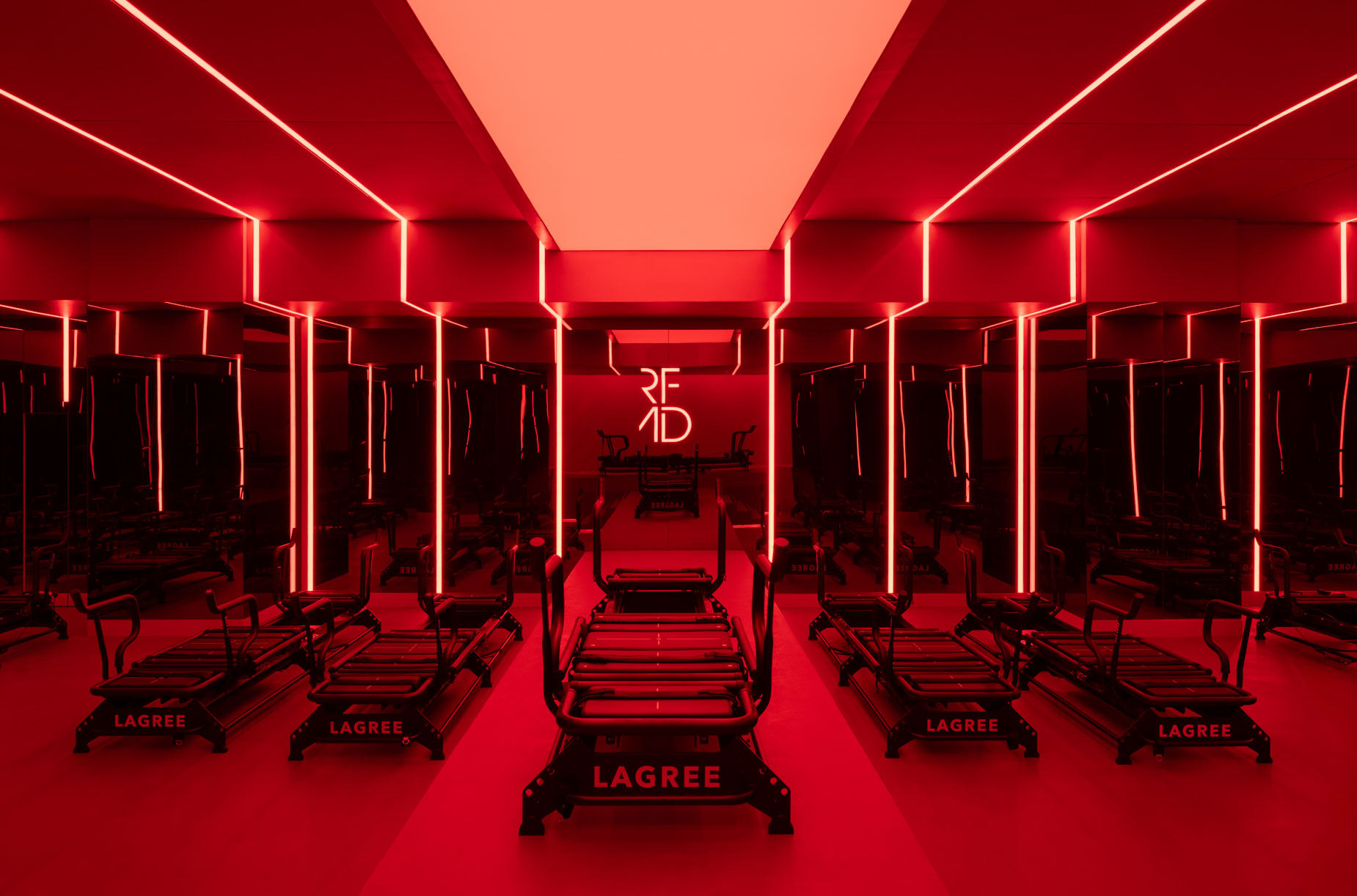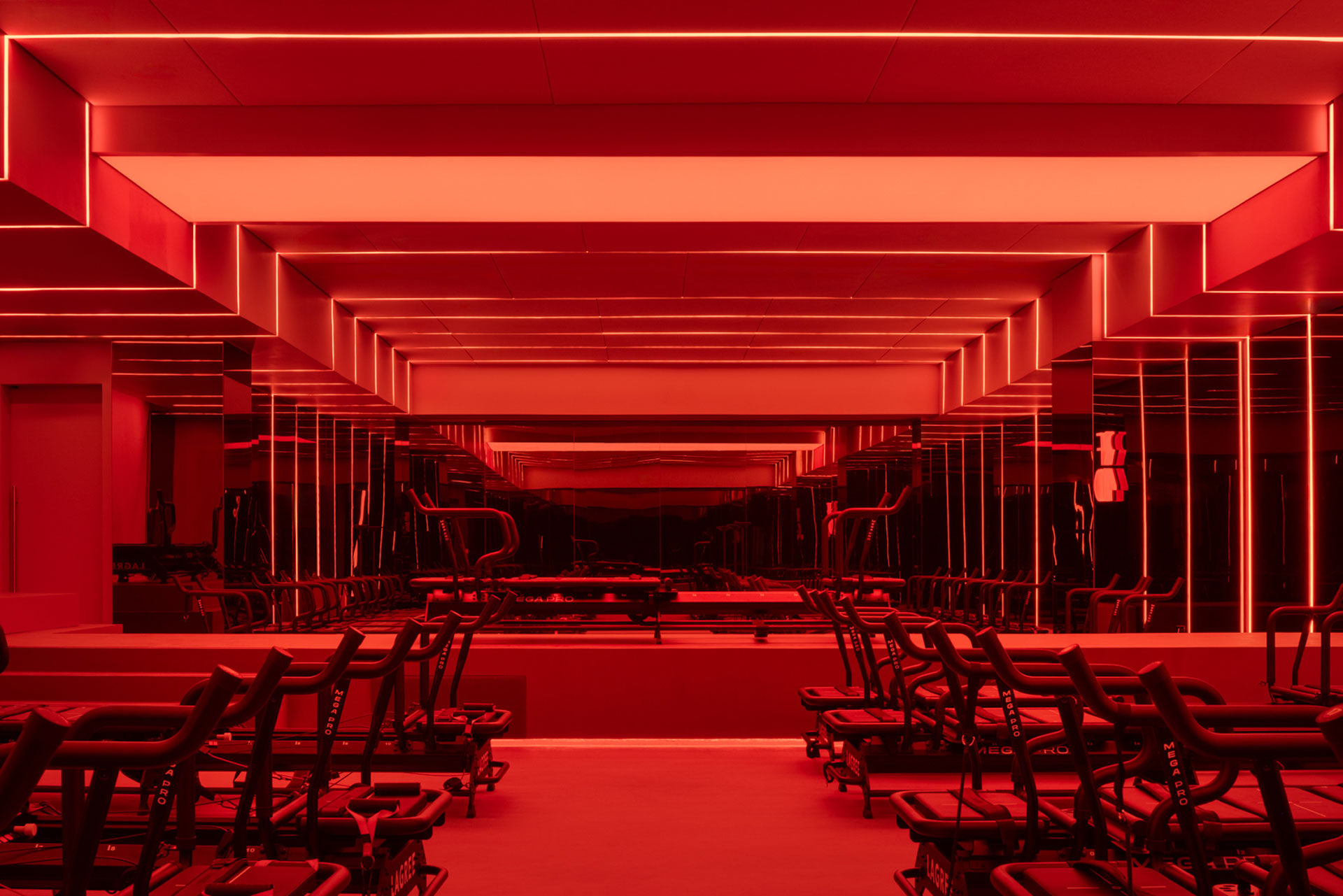 The studio features thirty Megaformers flanking a central platform that elevates the instructor as both guide and stage performer. Neutral-toned surfaces set the stage for fully integrated chromatic lighting and audio systems tuned not just to volume and colour, but to stamina, recovery, and focus.